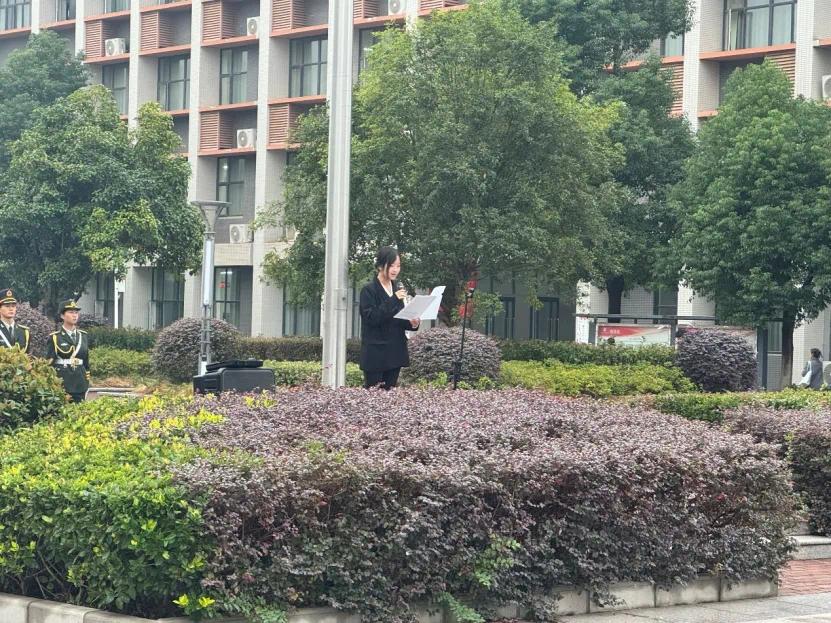 在升旗仪式之上,24级电子商务1班的何杨琳作为新生代表发表了激昂人心的讲话。她指出,步入大学拥有了更多的期许和追求,正因如此,更应该精心做好学业规划,秉持“穷且志坚,不坠青云之志”的态度,一步一个脚印地去达成自己的目标。