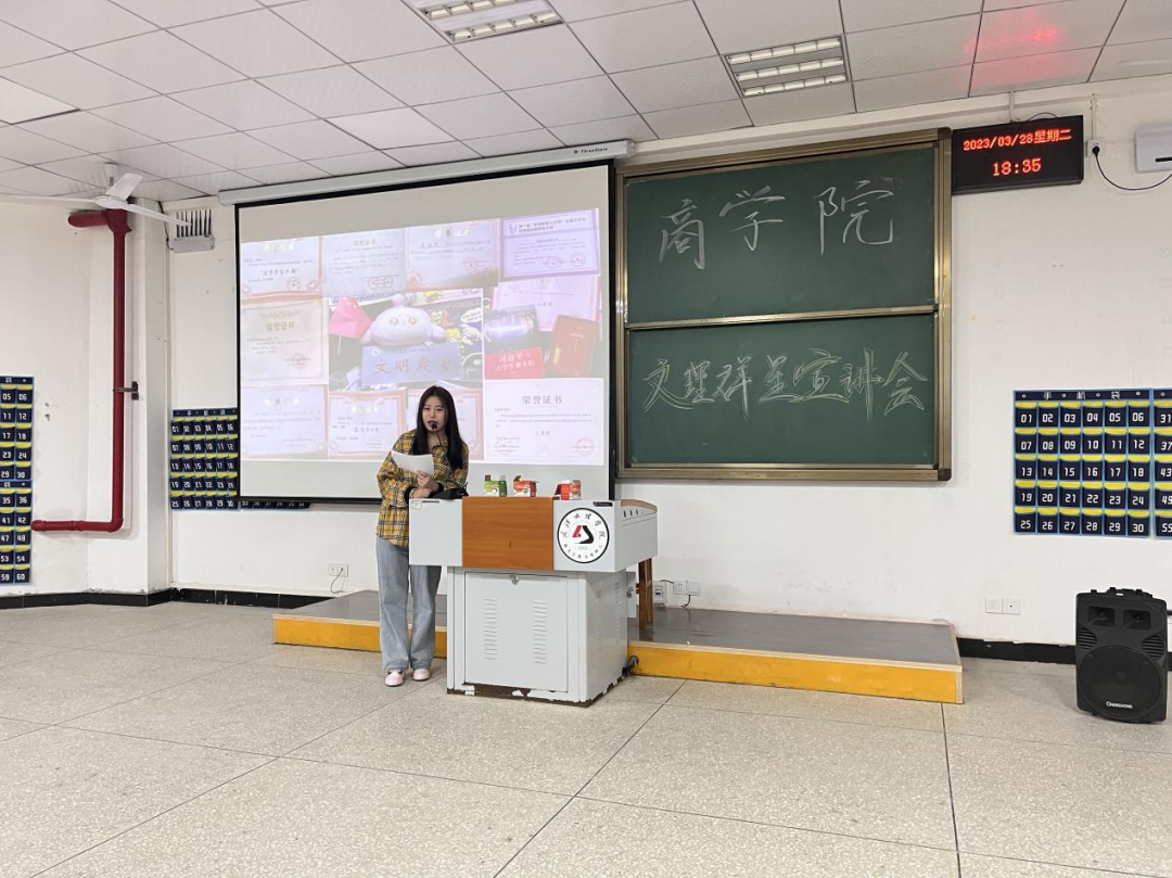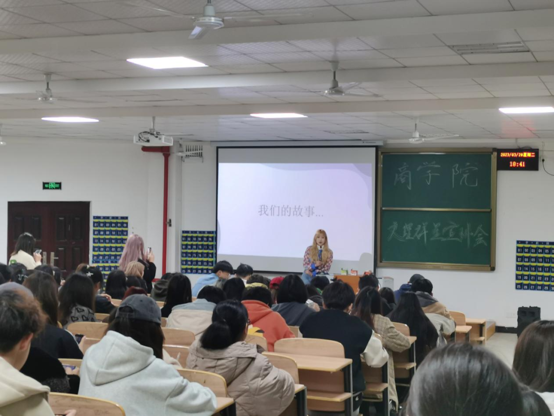 3月28日18:30—20:00,yl7703永利集团2023年文理群星宣讲会yl7703永利2022级本科专场在4-121举办。yl7703永利2022级辅导员张萌老师和2022级财务管理、电子商务、物流管理、国际经济与贸易、金融学、投资学专业学生共计200人参加。yl7703永利学生覃圆梦(2021级大数据与会计2班)、肖若莹(2020级市场营销班)、刘星颖(2020级财务管理)、王铭扬(2020级财务管理2班)、张玮琪(2020级财务管理2班)担任宣讲人。