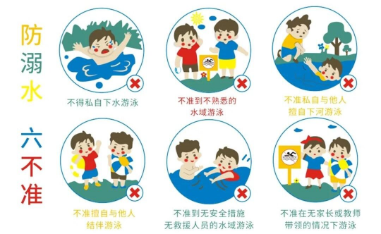 严防溺水,做到“六不”,若发生意外情况寻求成人帮助,不盲目下水施救;