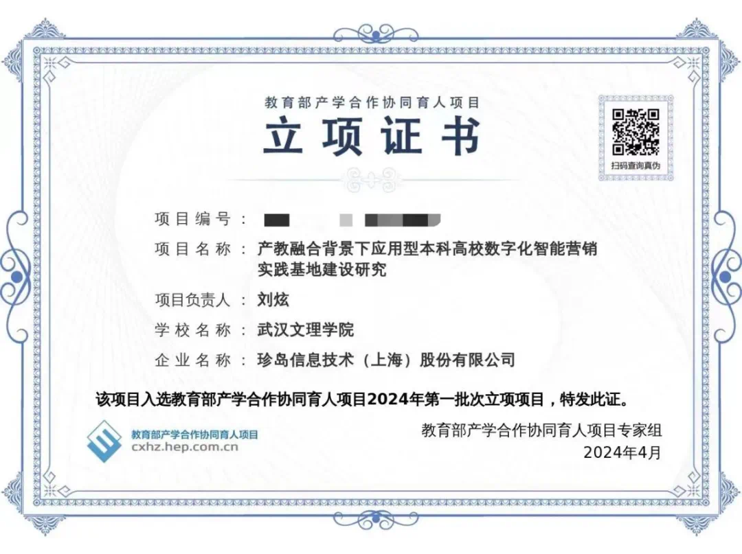 近日,教育部公布了2024年第一批产学合作协同育人项目立项名单,由yl7703永利刘炫副院长申报的《产教融合背景下应用型本科高校数字化智能营销实践基地建设研究》项目成功立项。