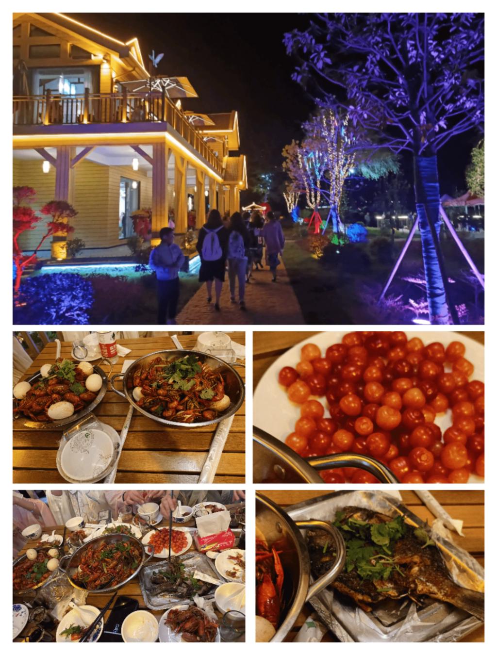 演出结束后,老师们带着我们去白鹤村的风景烧烤区吃夜宵。在这里,山清水秀的自然风景,还有灯光璀璨的人文景象让人心旷神怡。政通人和的繁荣景象让我感触学校援助房县脱贫攻坚战的成果。