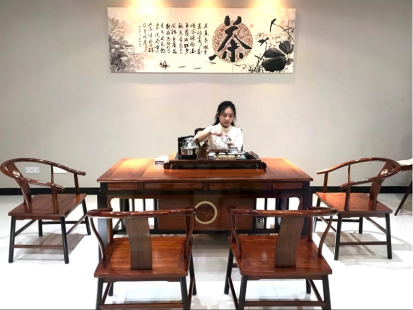 这门课有一半是讲授一半是实操。在课堂上主要跟大家讲述绿茶、红茶、黄茶、白茶、青茶以及黑茶这六种基本的茶类,他们的特点以及各自的代表茶。剩下一半的课程会带大家去茶艺教室,教大家如何冲泡不同种类的茶,让大家自己去练习茶艺。同学们在茶艺课上可以自己学习、自己表演茶艺,也可以去品尝各种不同的茶叶。