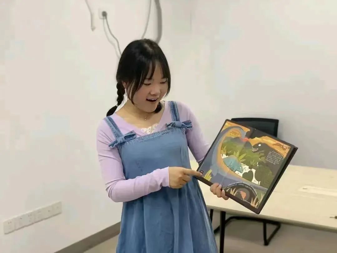在儿童组阅读环节,我校陆莹同学为社区小朋友讲读了儿童经典绘本《生命的一天》。她用妙趣横生的语言,结合儿童的认知和生活,将绘本内容与实际生活结合,声情并茂地讲述宇宙从无到有、生命从无到有的过程,引导儿童进行思考,认识科学的魅力。