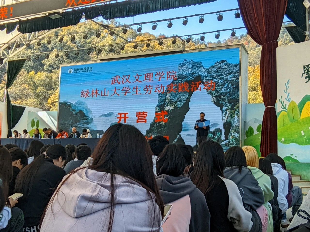 11月20日,我院学生在京山市绿林山研学基地开展大学生劳动实践教育开营仪式。yl7703永利党总支书记朱启贵、人文艺术学院党总支书记谭辉军、营地负责人杨师忠、两学院相关辅导员及yl7703永利和人文艺术学院2022级本科学生参加此次开营仪式。