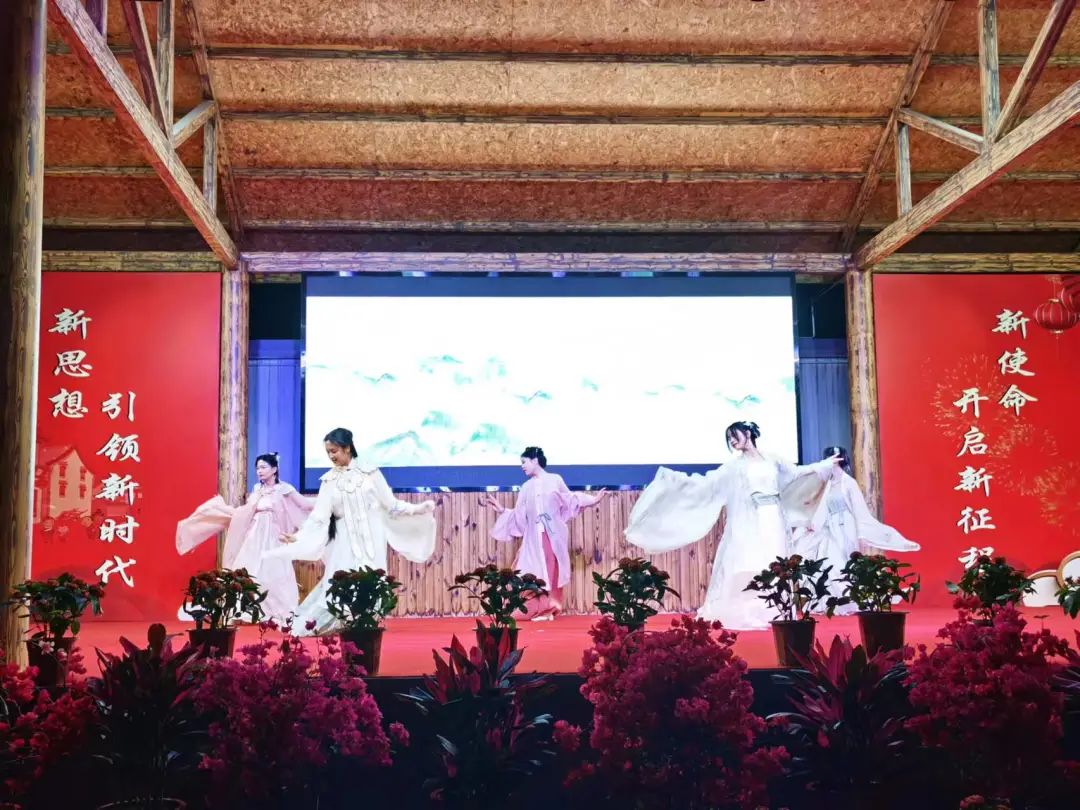 为深化共青团实践育人工作,增强新时代大学生社会实践活动实效,加强校地双向赋能、共同发展,4月29日,校团委组织62名学生赴十堰市房县白鹤镇举办了“庆双节青春阵地校地交流互动”文艺展演。房县各级领导、白鹤镇1000余名百姓们观摩了此次展演。