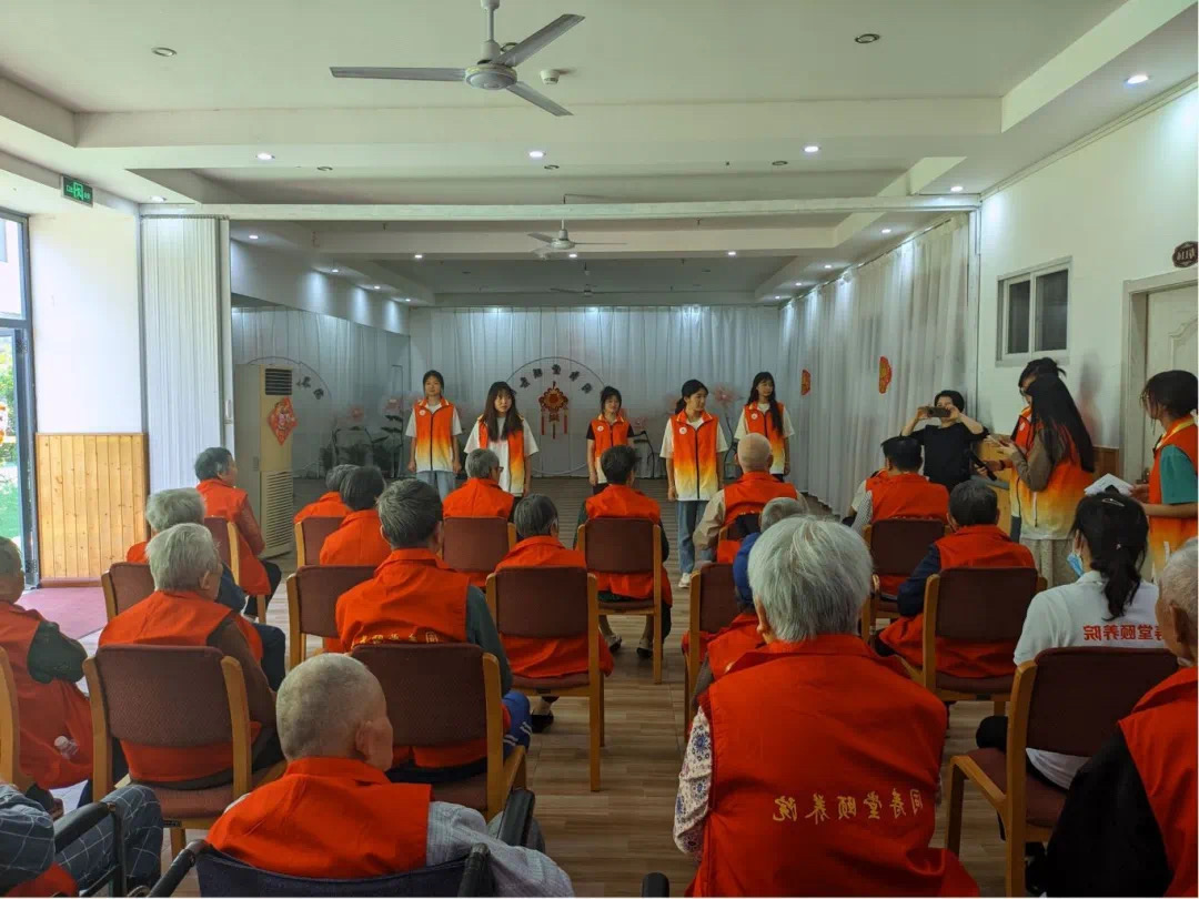 游戏过后志愿者们接着进行了表演,大家合唱《父亲》这首歌。将现场的很多观众都代入到了歌声当中。紧接着又唱起了歌曲串烧《桃花朵朵开》和《天下相亲相爱》。很多老人都随着音乐的节奏舞动,老人们听完歌后志愿者们又组织了游戏活动逛三园和猜灯谜等。游戏之后大家进行了《南山南》的歌曲演唱。在志愿者们的陪伴下老人们都的开心展露出来前所未有的笑容。有的老人也深情的演唱了自己拿手的,歌曲现场氛围感觉像一家人其乐融融。最后表演完所有的节目全体志愿者合唱《粉红色的回忆》这首歌。