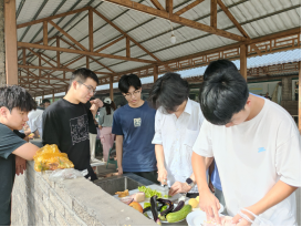 在土灶炊事区,学生们围坐土灶旁,从生火添柴到掌勺烹饪,烟熏火燎间完成“舌尖上的劳动课”。同学们不禁感慨感慨:“土灶饭的香气,是书本上学不到的生活智慧。”