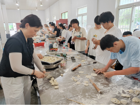 图为我院徐老师指导学生包饺子