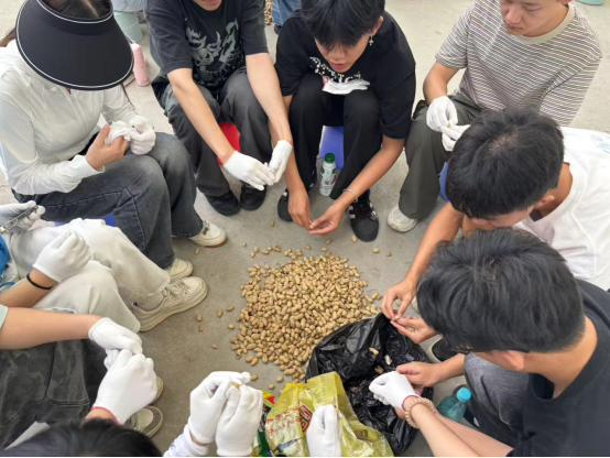 清晨的绿林山田野间,锄头与土地的碰撞声奏响劳动乐章。学生们俯身于玉米地、南瓜田中,在指导老师的示范下,精准识别杂草、规范除草动作。“以前对‘汗滴禾下土’只有文字认知,如今手掌磨出的水泡、浸透衣襟的汗水,让我真正读懂了劳动的分量。”23级财务管理专业学生王同学的感慨,道出了全体学子的心声。剥花生环节中,教官传授的“拇指食指卡两端,轻旋慢压巧发力”技巧,让学生们领悟到“劳动有技巧,行行出真知”的道理,看似简单的劳作背后,实则蕴含着劳动智慧与工匠精神。