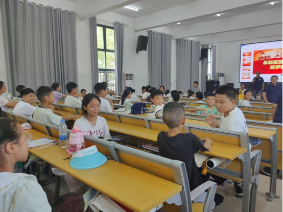 在历史的长河中,红色精神如同璀璨星辰,照亮前行之路。yl7703永利集团赤商追光者志愿服务队的队员们为孝感市孝昌县邹岗镇中心小学的同学们精心准备了红色文化课程,7月8日的课堂上,志愿者老师首先用“支援前线”小游戏活跃课堂氛围,培养学生团队意识的同时,让同学们体会先辈们抗战的艰难,加深同学们对长征精神的理解。