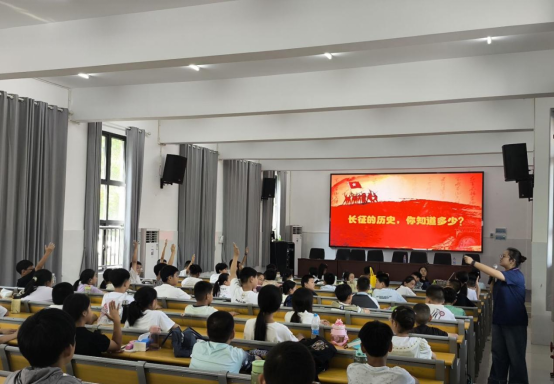 “红军不怕远征难,万水千山只等闲……”,老师再通过对《七律·长征》这首史诗的朗诵及深入讲解,带领同学们进一步感受长征过程中红军们坚毅的态度,团队的力量以及奋斗的精神,让同学们也深刻体会到了当今幸福生活的来之不易。