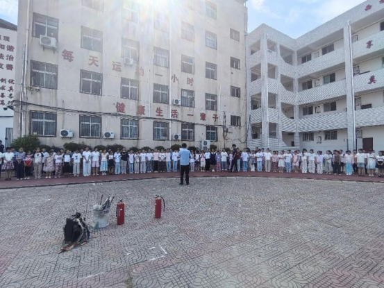 演练开始前,各班老师依次将同学们有序带到操场,由消防队代表为大家介绍了消防安全知识以及火灾发生时的应对措施,还为大家介绍了近几年来典型的火灾案例。提高学生消防意识,就把消防安全教育融入到日常教学的点点滴滴中,让它成为一种习惯,深深地扎根在每一个学生的心中。