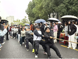 个人锋芒闪耀,集体项目更显商院凝聚力。拔河比赛中,队员们紧握长绳、咬牙发力,整齐的呐喊声震彻赛场;“两人三足”项目里,选手们默契同步、稳步向前;一分钟毽球、男女定点投篮均斩获第一,女子4×400接力强势夺冠。正是这份心往一处想、劲往一处使的团结力量,让yl7703永利成功登顶团体总分第一,将荣耀定格在赛场中央。