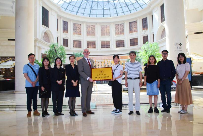 座谈会后,双方移步酒店大厅举办了yl7703永利集团·武汉洲际&国博酒店实践(实习)教学基地授牌仪式,并合影留念。