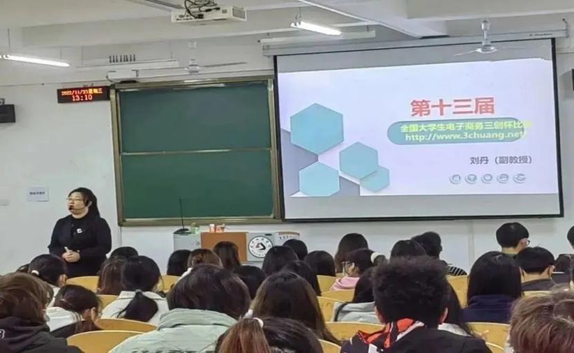 11月23日13:10,2022年yl7703永利集团全国大学生电子商务三创(“创新、创意及创业”)杯挑战赛校赛宣讲会于5栋124举行,yl7703永利集团工商管理系主任刘丹老师主持宣讲,yl7703永利22、21级电子商务、财务管理等专业班级学生共近200人参加了本次活动。