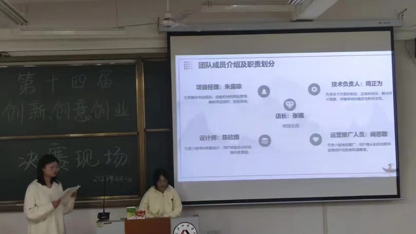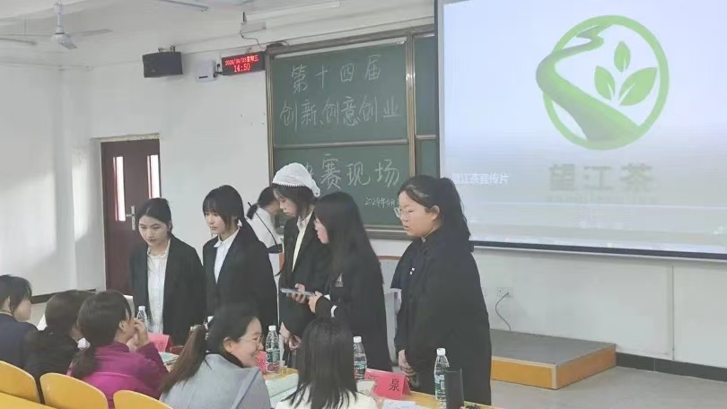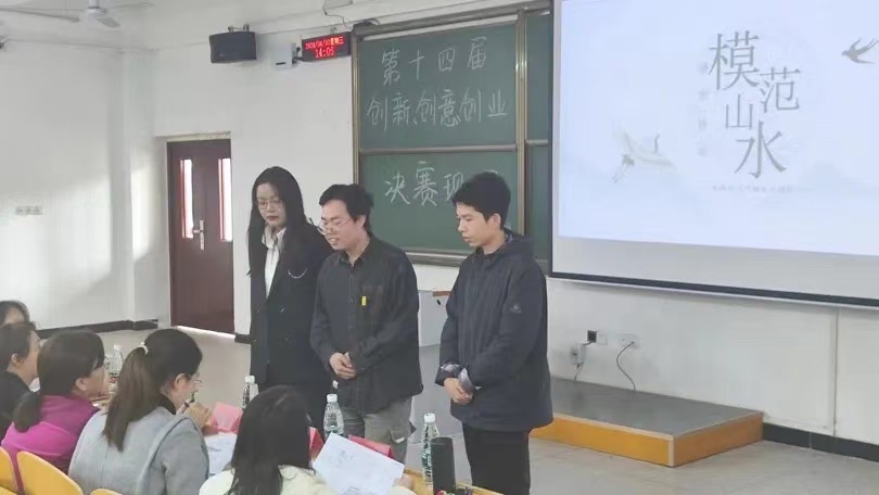本次大赛,共有23名学生团队报名参赛,经过团队指导老师的精心培训和指导以及校赛预赛的选拔,最终10个学生团队入围校赛决赛。决赛现场分“项目介绍”、“现场答辩”两环节。现场气氛热烈,互动良多。选手们图文并茂的文案和风格鲜明的展示赢得了评委老师的关注和提问。