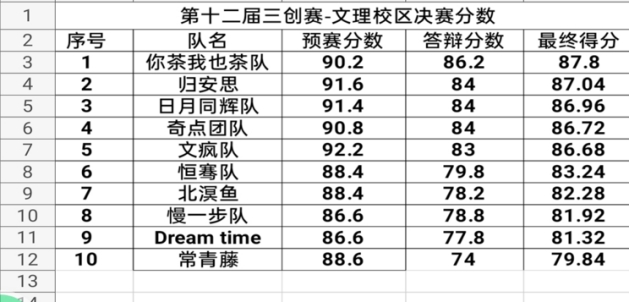 经过激烈角逐,本次校赛决赛成绩排名如下: